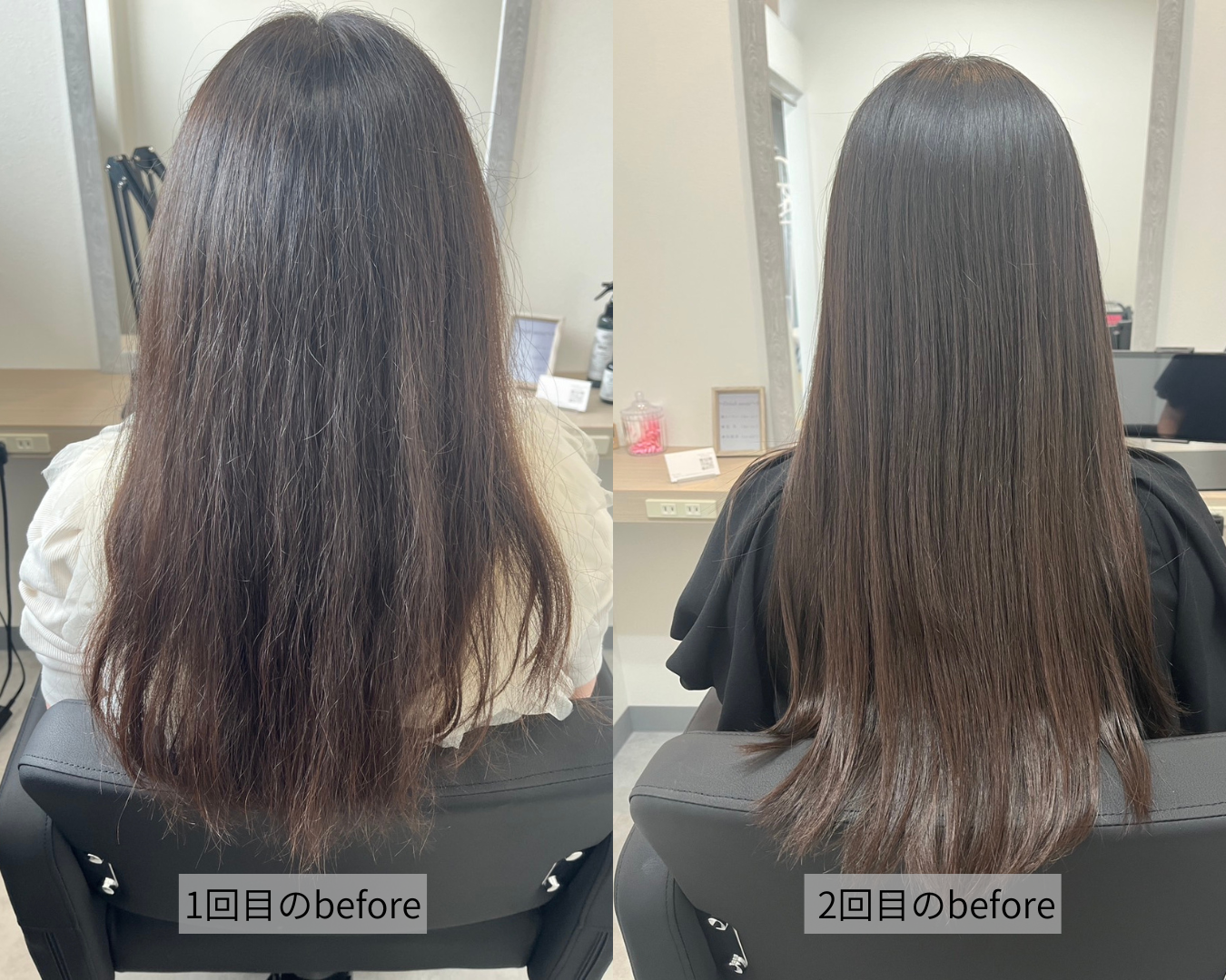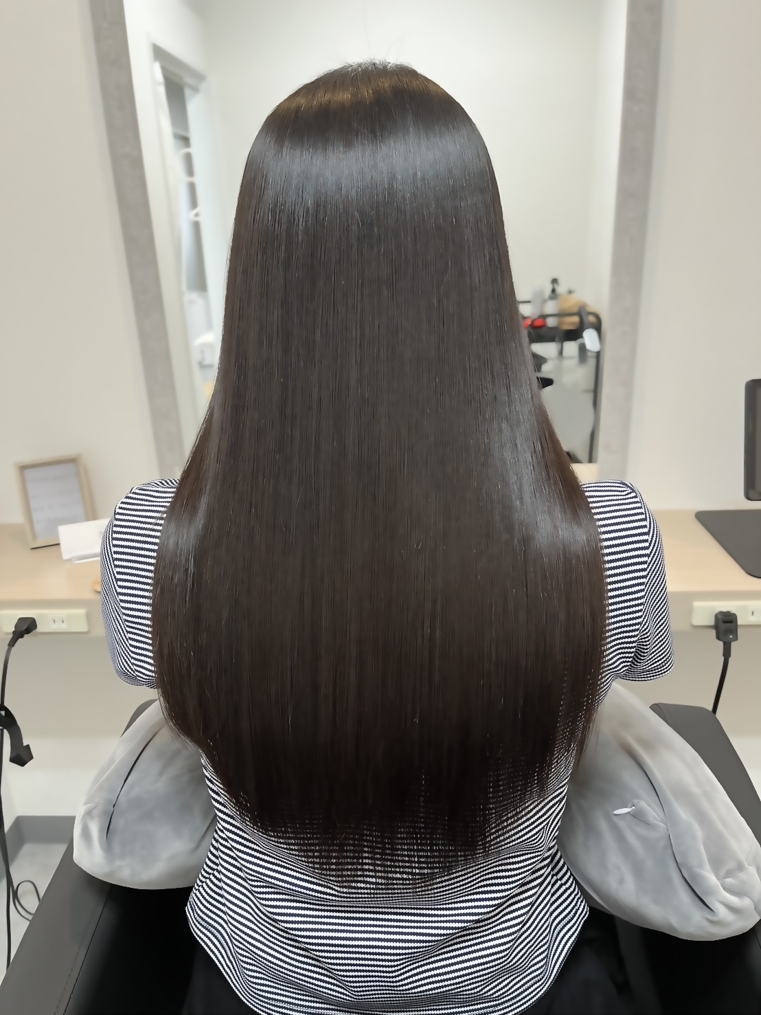 それは、髪質改善ストレートになります。 柔らかいサラサラの手触りを1番実感できるメニューです。 施術の特徴としましては、あらゆる工程にたっぷりトリートメントが入…